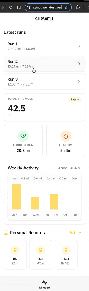 The gap wasn't obvious until you looked at the use case honestly. A 20-mile long run with interval data, elevation, and pace splits produces more information than a static screen can display. The existing implementation lost partial laps entirely — an 11.24 mile run showed 11 miles. The .24 just disappeared.