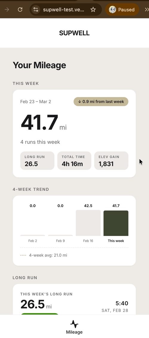 The gap wasn’t obvious until you looked at the use case honestly. A 20-mile long run with interval data, elevation, and pace splits produces more information than a static screen can display. The existing implementation lost partial laps entirely — an 11.24 mile run showed 11 miles. The .24 just disappeared.