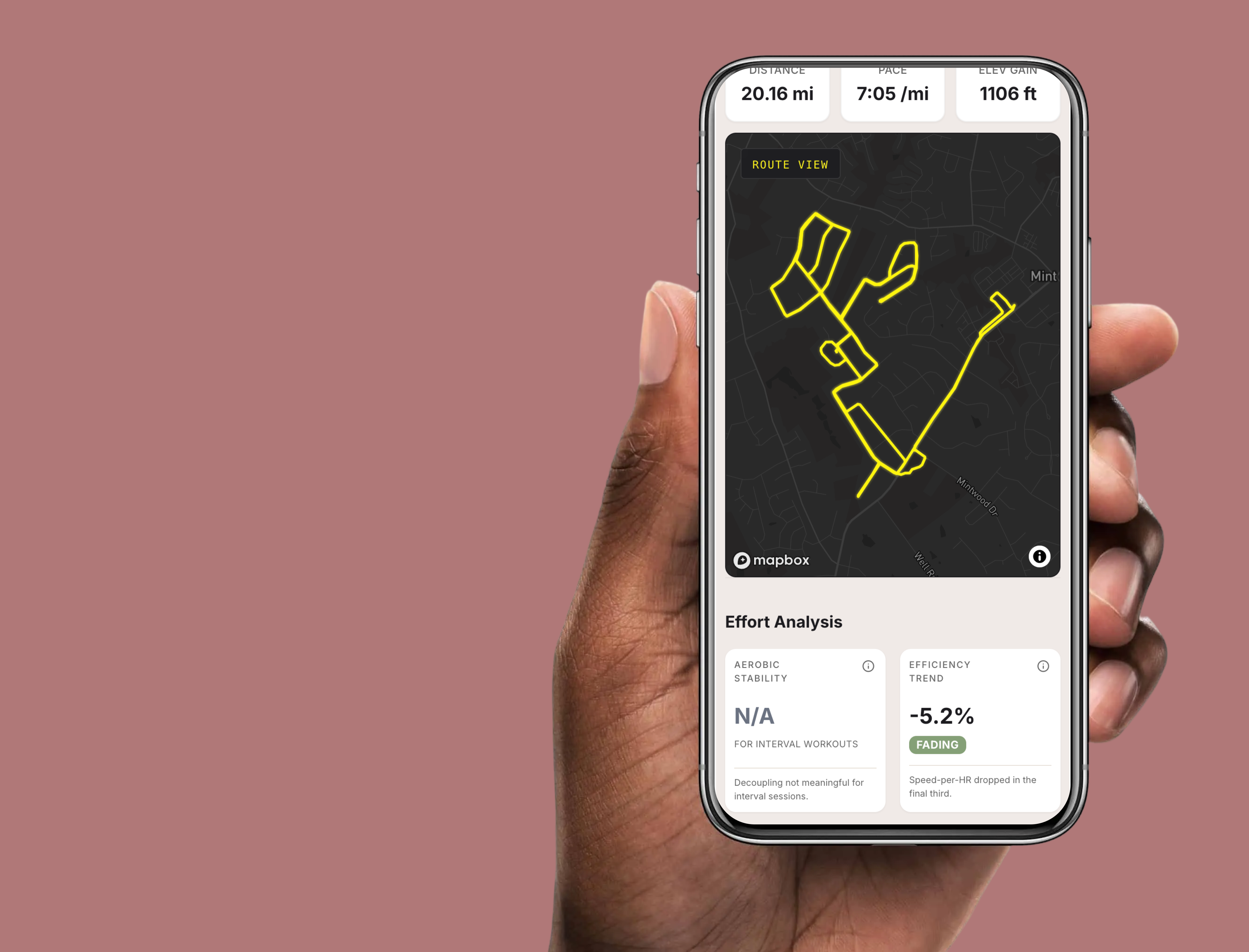 The result: a prototype with Mapbox route visualization, Workout Intelligence scoring, pace tiles, effort bands, and interval breakdowns — built to stress-test real Garmin data before a single line went into the production codebase.