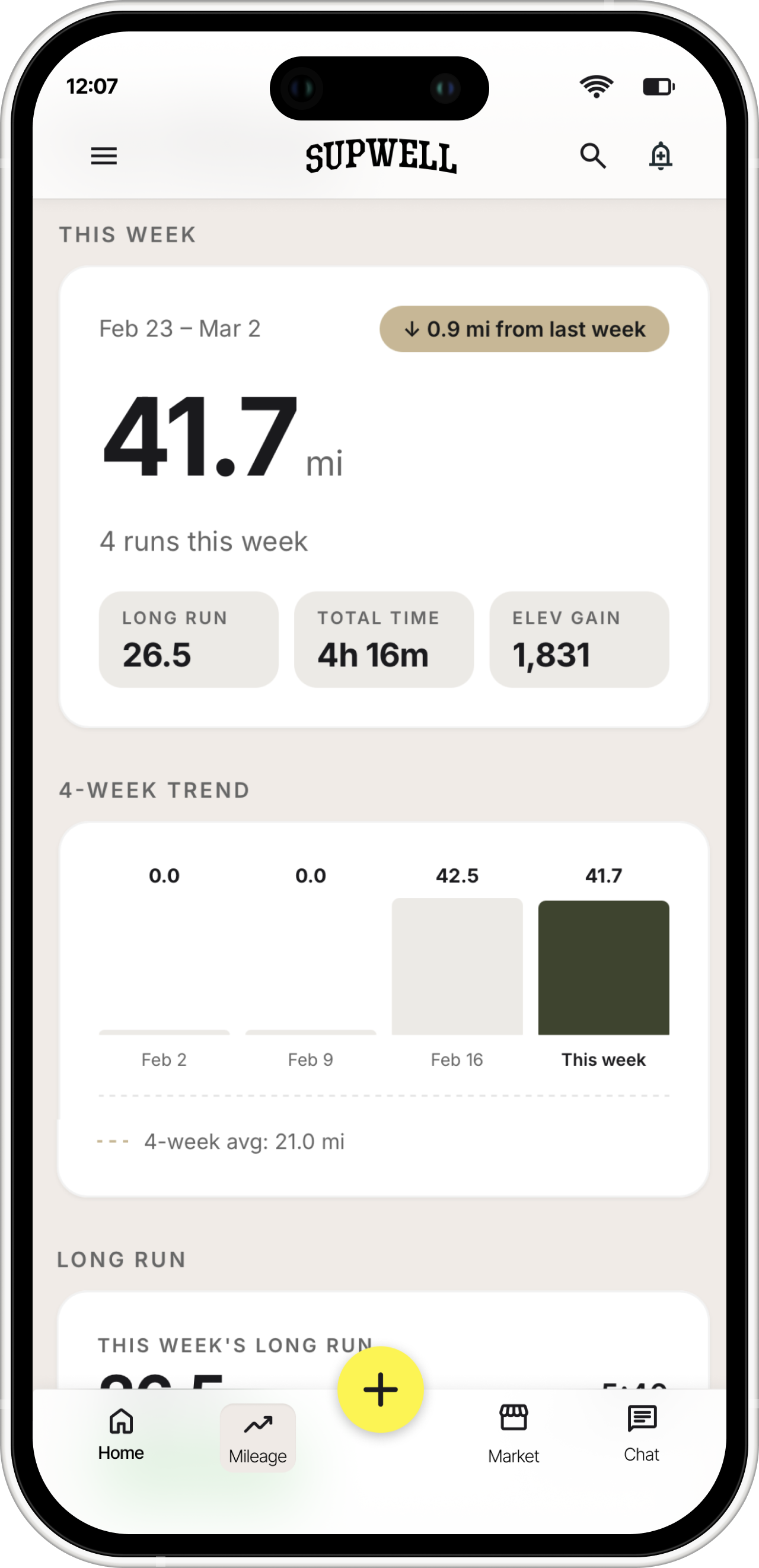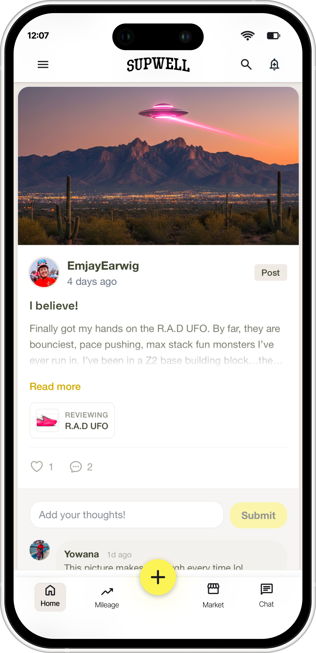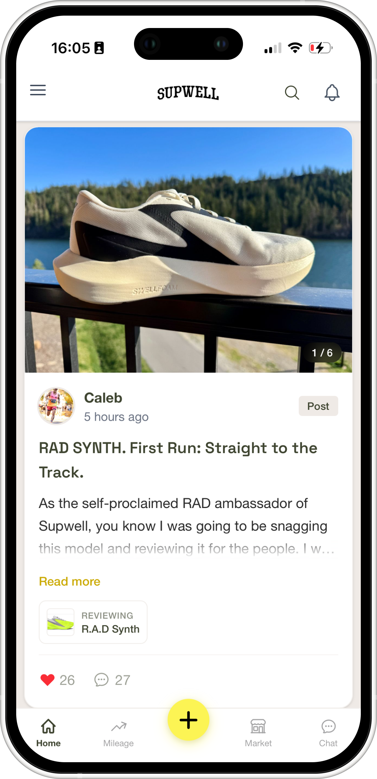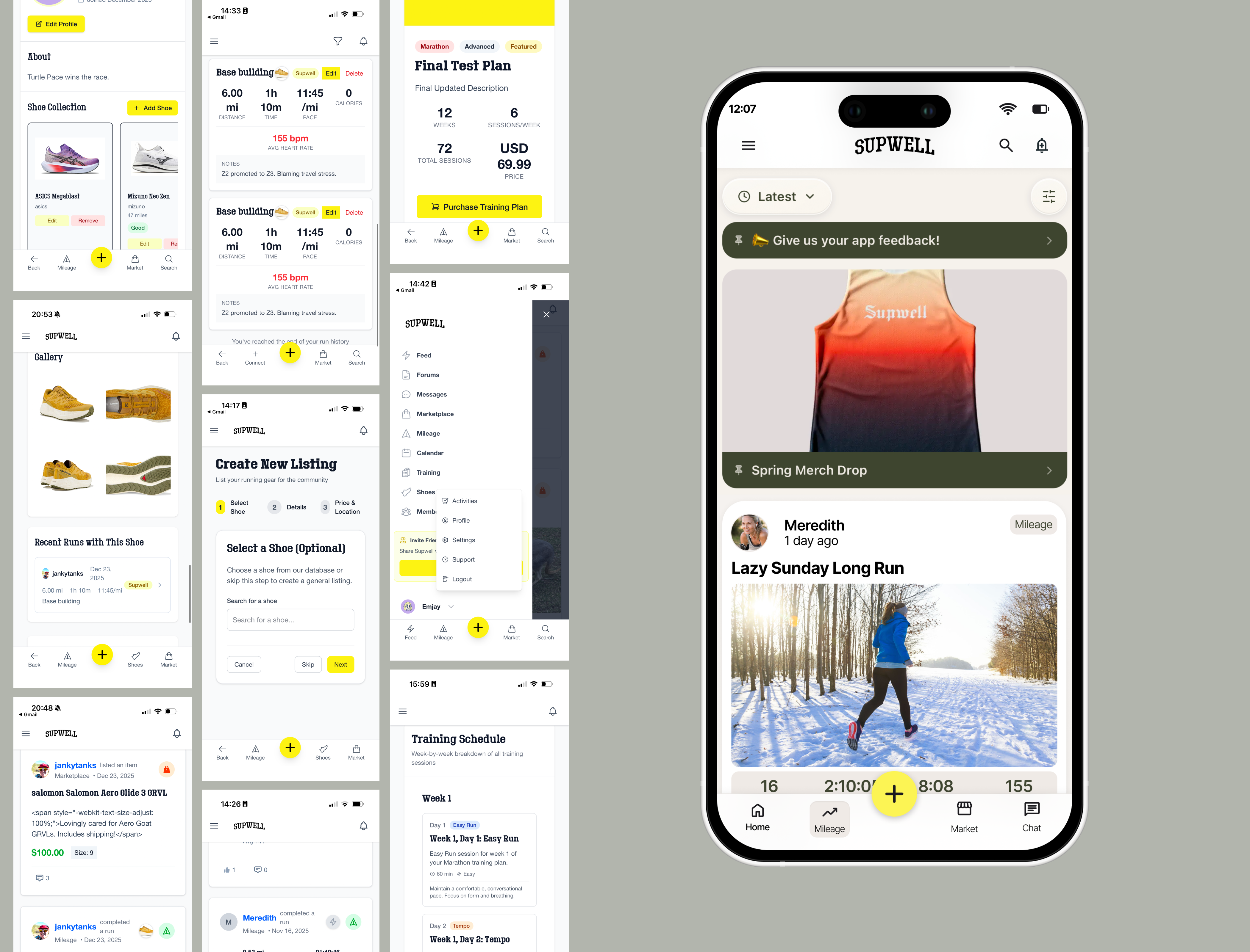 Supwell is a running community app — shoe tracking, social feed, and a peer-to-peer marketplace for used running gear. The founder builds in public, sharing development progress with an active beta community in real time.
